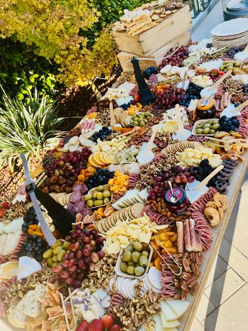 A Grazing Table is a beautifully arranged tablescape displaying all the delicious features of a charcuterie board. For 25-60 guests - Flat lay tables start at $19/pp & Elevated tables start at $21/pp. For 61-150 guests - Flat lay tables start at $16/pp & Elevated tables start at $18/pp. Holiday themed tables are $25/pp. Let's discuss your quote!