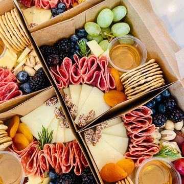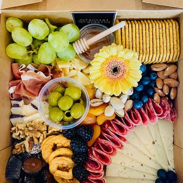 Photos are representative of available items. Boxes and boards vary as each are made and reflect seasonality and ingredient availability. We can easily accommodate food allergies - just let us know when ordering.